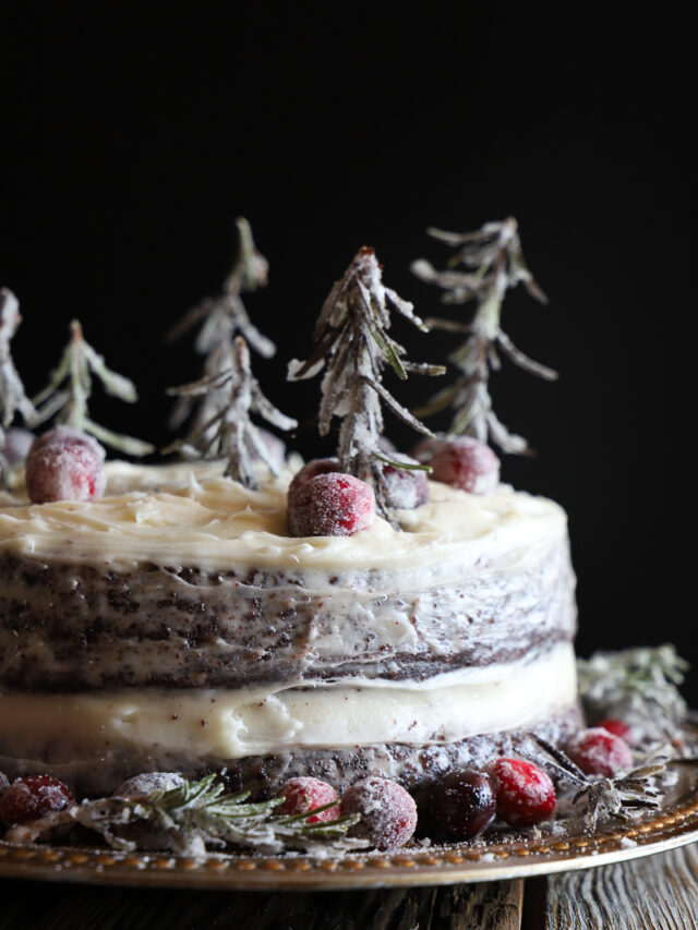 Chocolate Winter Wonderland Naked Cake with Vanilla Mascarpone Icing.