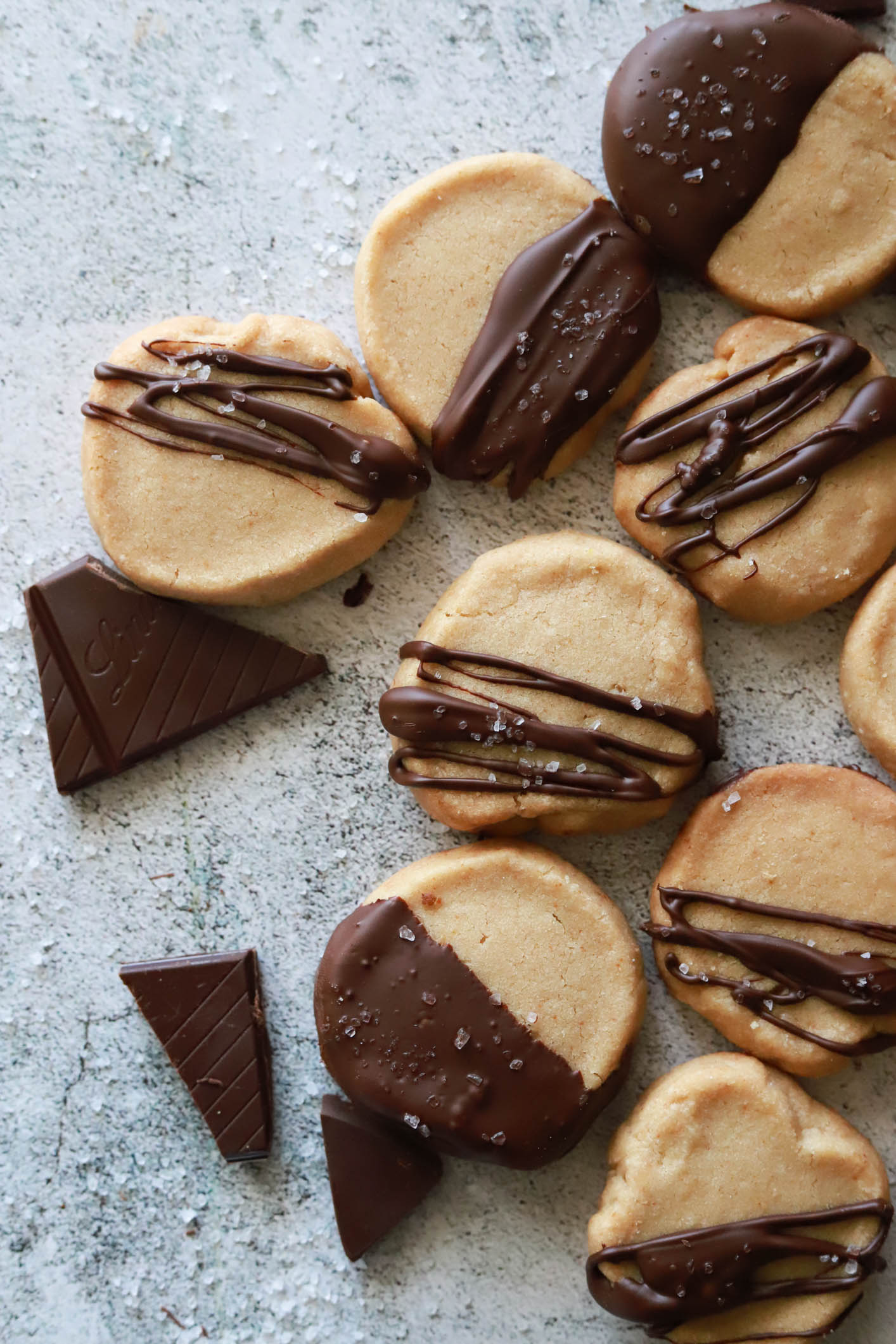 Dark Chocolate Sea Salt Brown Butter Shortbread Cookies