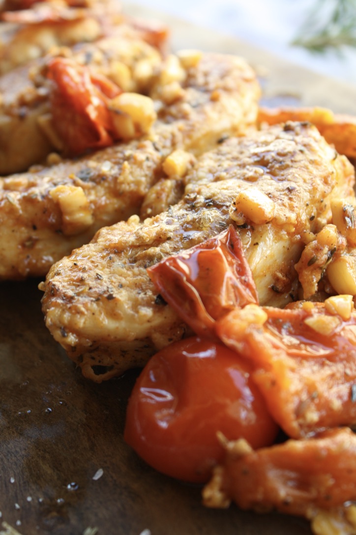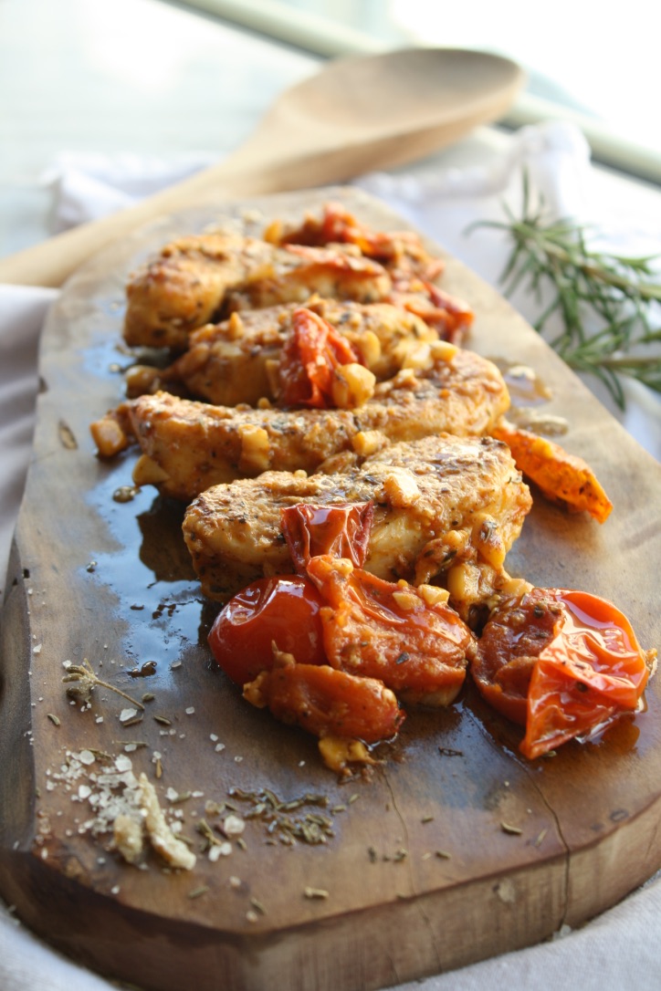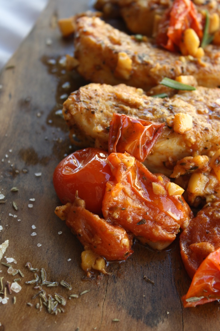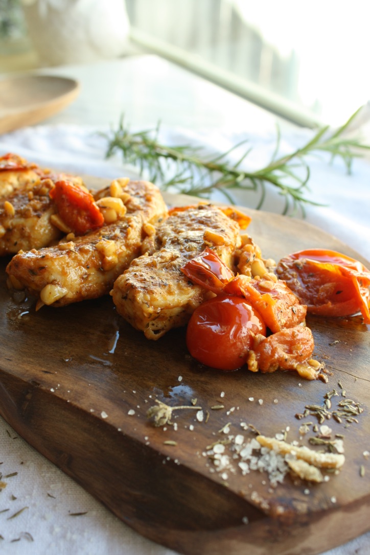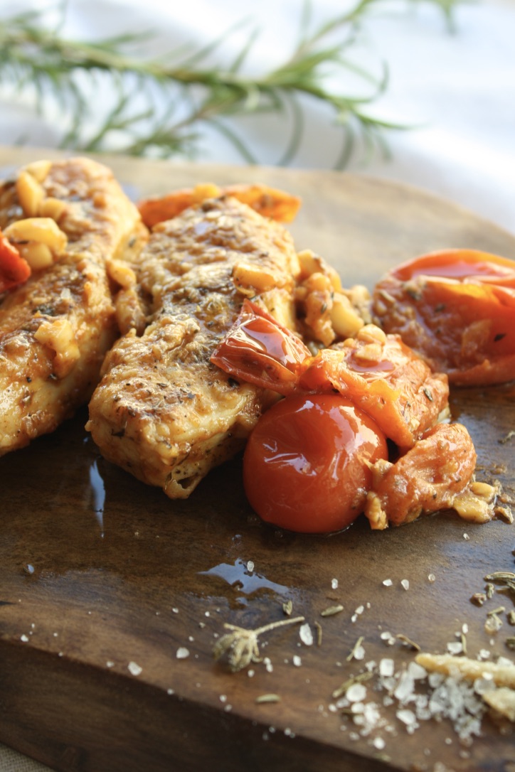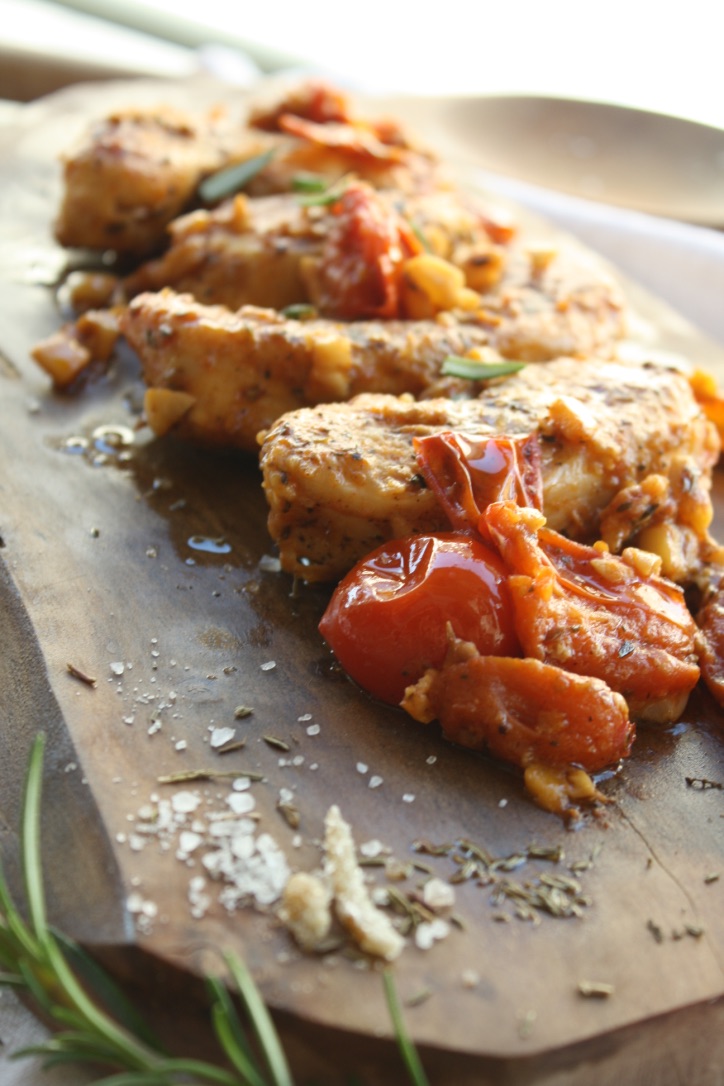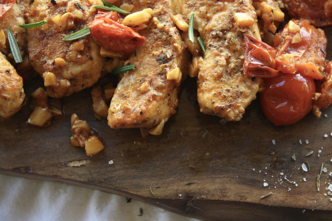 Chicken with Burst Heirloom Tomatoes in a Butter Herb Pan Sauce