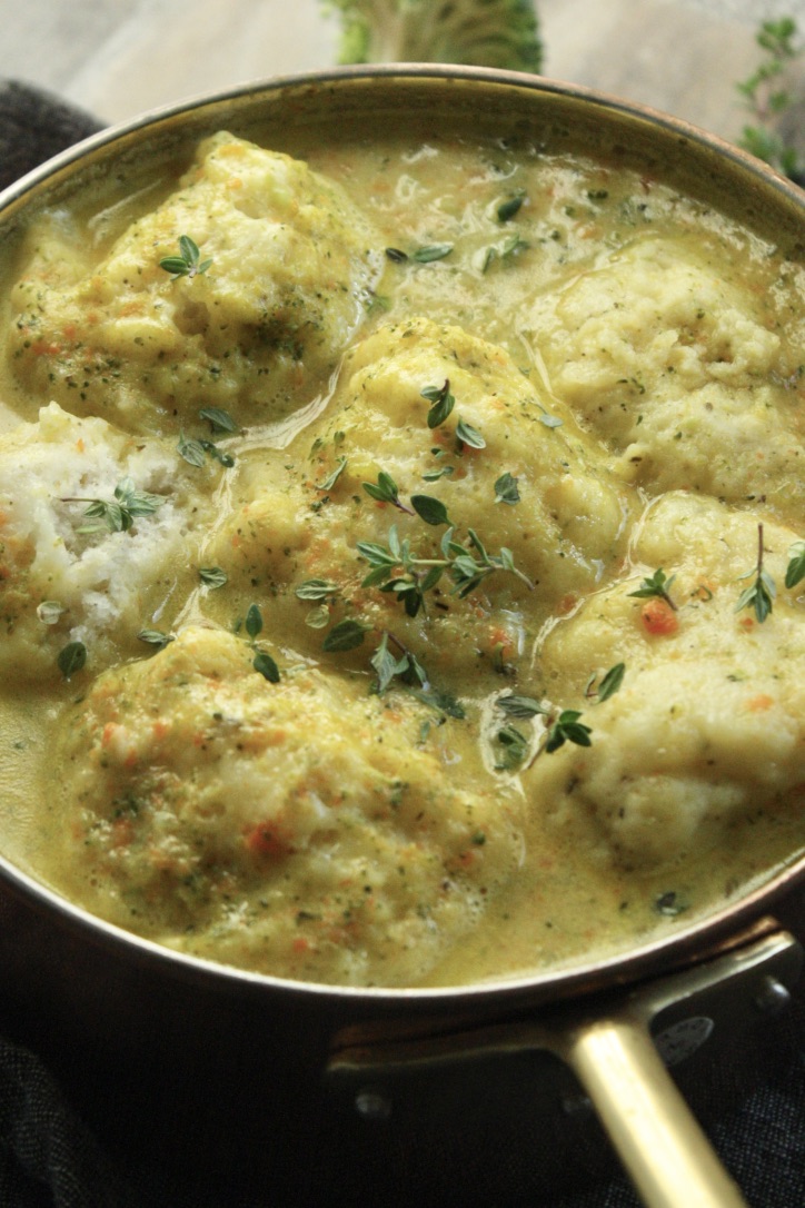 Creamy Broccoli Cheddar Soup & Dumplings