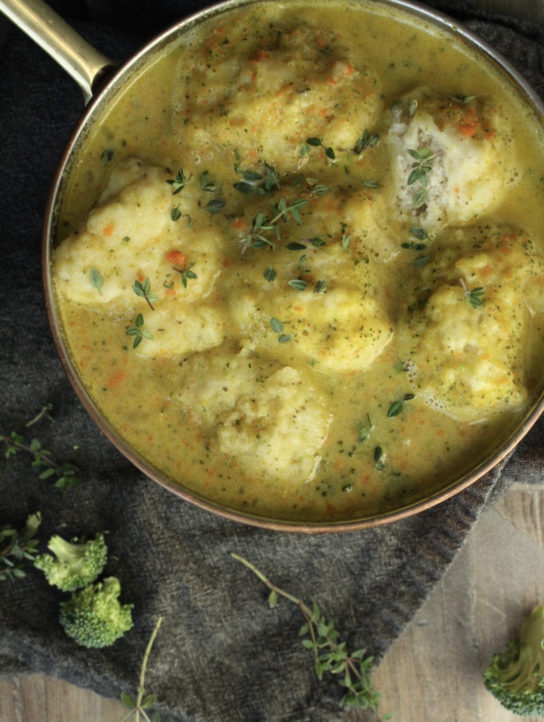Around here soup season is our favorite season by far. When the weather cools down, I always try to make at least one soup for dinner in our weekly dinner routine. Soup is just so easy, quick, and you can load it up with all the veggies you need to use up. Add some rustic bread for dipping, and you have the perfect cold weather meal. Or in this case just add some dumplings on top for a special twist!