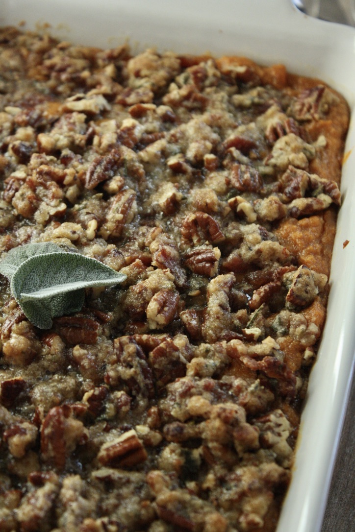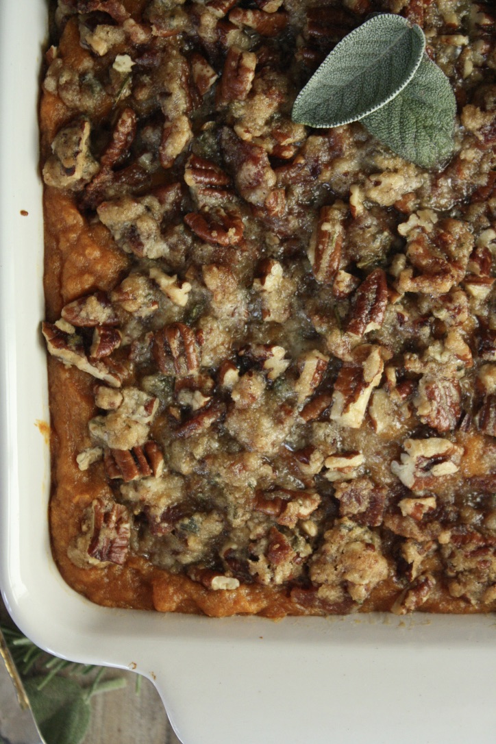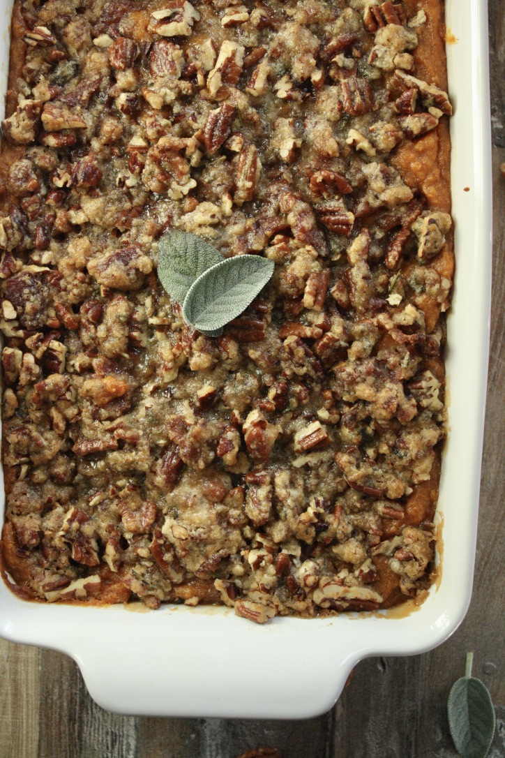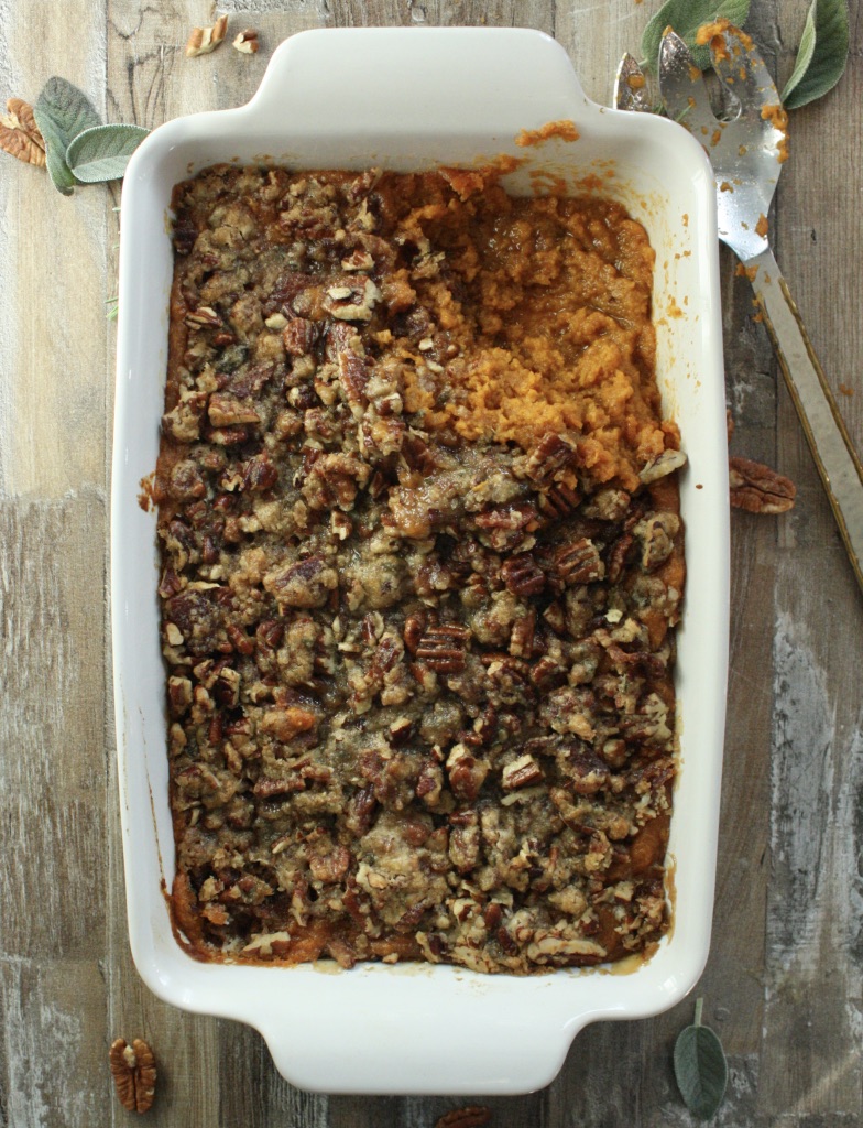 Sweet Potato Casserole with Brown Sugar Bacon Pecan Topping