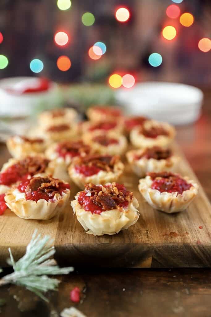 These Raspberry Brie and Bacon Bites would be a beautiful addition to an appetizer spread! A homemade raspberry compote, buttery Brie, and crispy bacon all baked into a phyllo cup. Get the Recipe –>